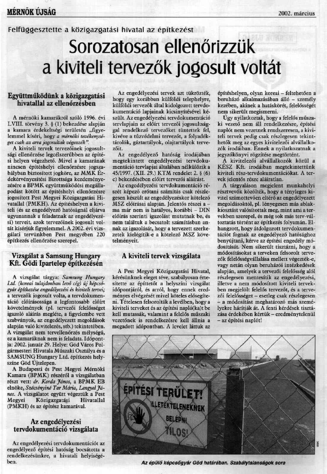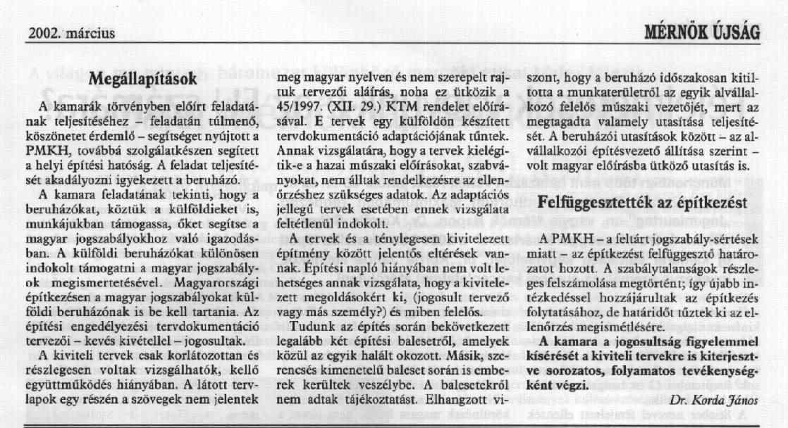 Sorozatosan ellenõrizzük a kiviteli tervezõk jogosult voltát